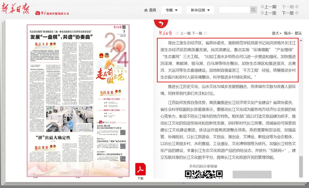 媒体链接:https://newspaper.xhby.net/?act=article&aid=1290577&layountIndex=2&date=20240125&siteID=2&id=1