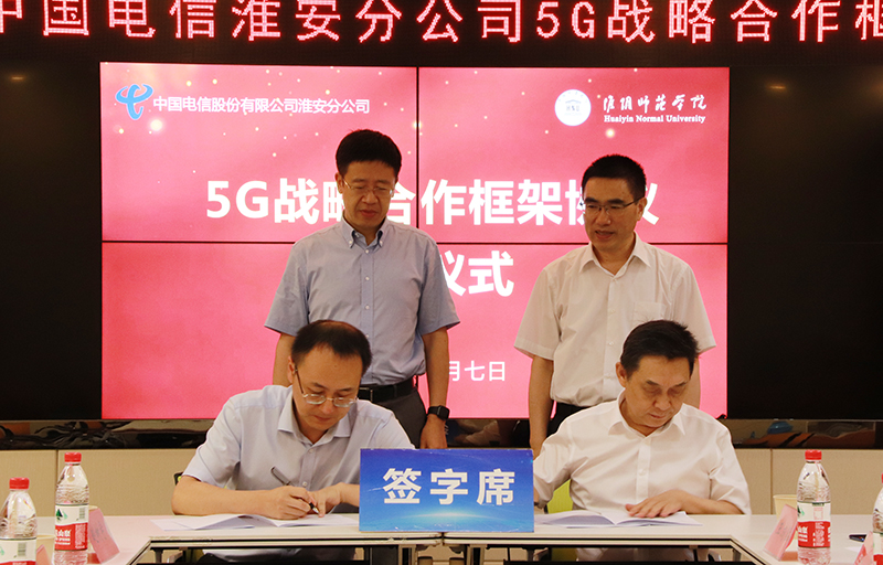 淮师新闻网7月9日电(记者 沈萍)7月7日下午,必赢nn699与中国电信淮安分公司签订5G战略合作协议。必赢nn699校长焦富民、副校长李仁和,中国电信淮安分公司党委书记、总经理袁黎轶,副总经理梅波出席签字仪式。