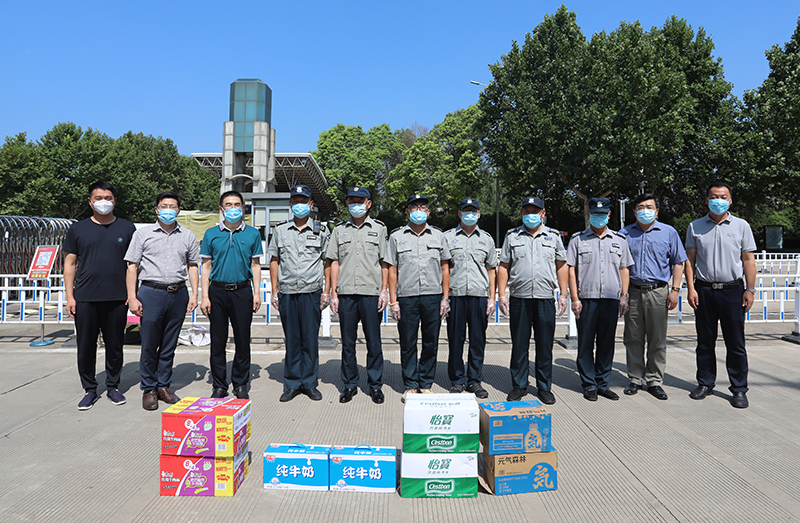 校领导先后来到杏园餐厅、校史馆南侧草坪、医务室、长江路校区南大门、招生与就业处,与在岗教职员工亲切交谈,详细询问他们的工作和生活情况,对大家的辛勤付出表示衷心感谢,并送上慰问品,叮嘱大家在开展工作同时,一定要做到防暑降温的自我保护,做好劳逸结合。