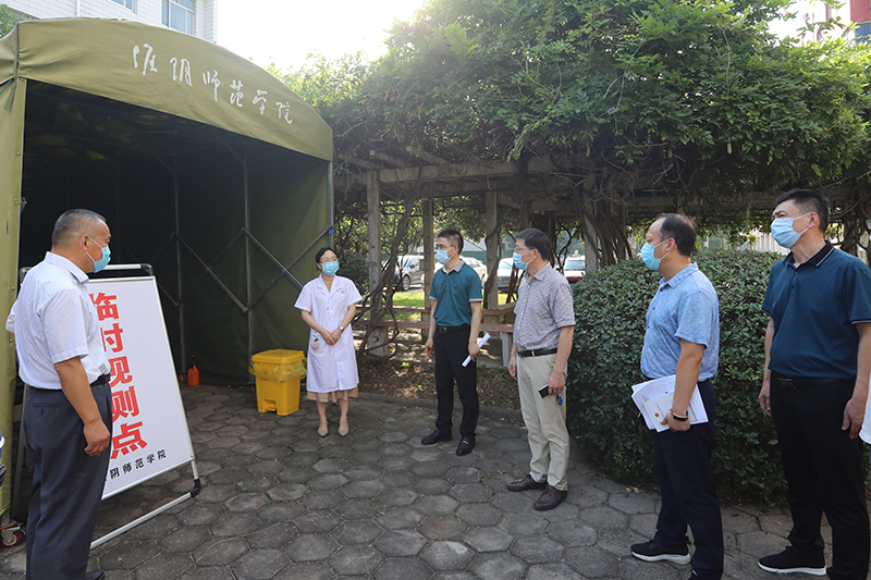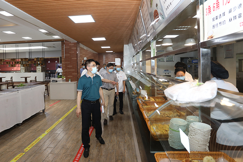 校领导先后来到长江路校区南大门、医务室、临时观测点、杏园餐厅等场所,认真听取了相关工作汇报,仔细查阅了档案资料,详细了解开学准备工作、防疫物资储备、食品卫生安全等情况,并对相关环节提出指导意见。