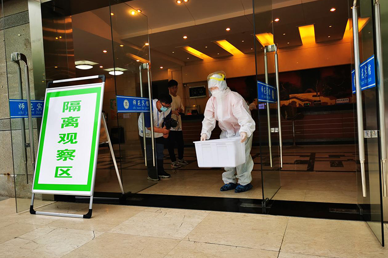 本次演练包括学生返校日体温异常、学生在宿舍自测体温异常、学生进餐厅就餐体温异常应急处置和隔离观察场所隔离人员处置流程四个场景演练项目。本次演练按照既定预案,反应迅速,配合密切,分工明确,有条不紊,准确高效地完成了秋季入学疫情防控医疗处置演练各项任务。