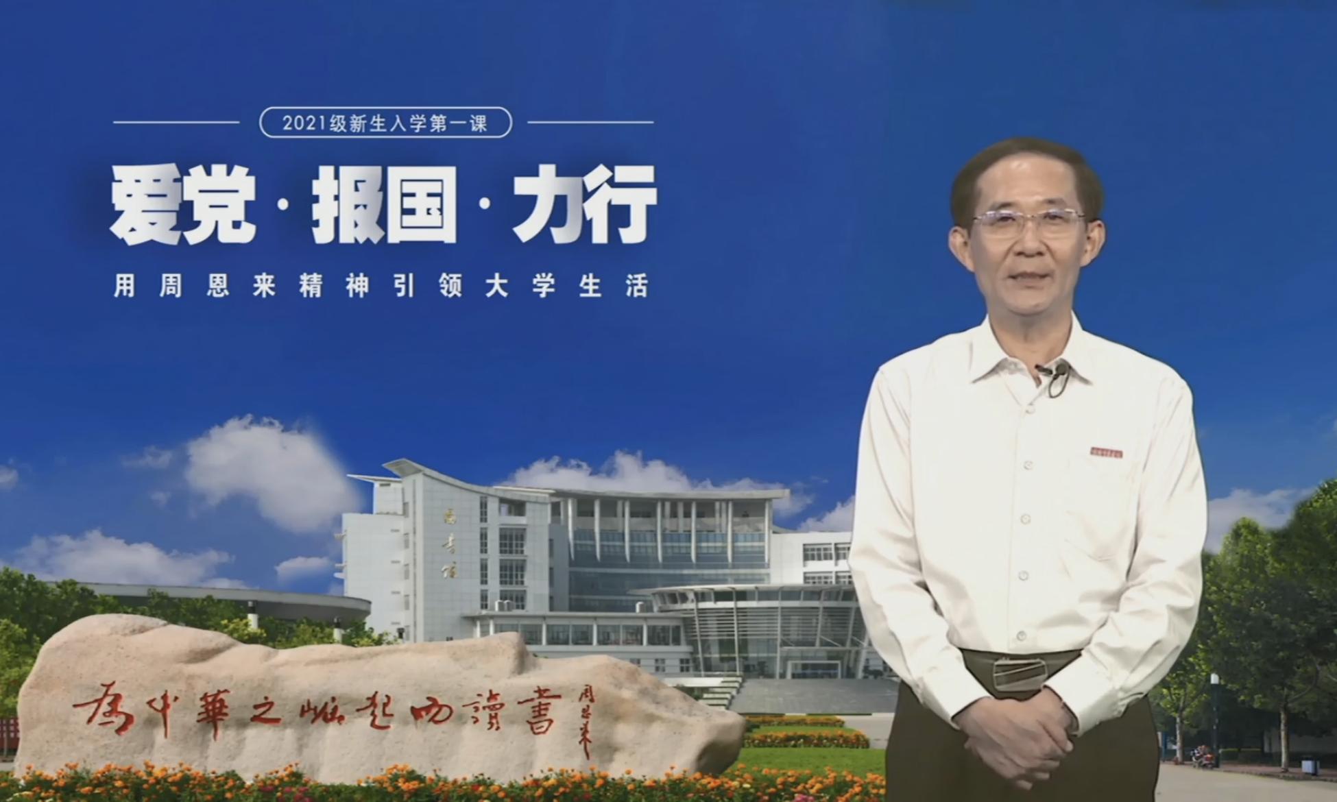 图为校党委书记朱汉清讲授2021级新生入学第一课