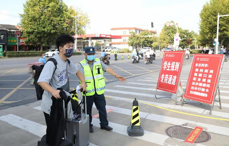 返校当日,学校各部门、各单位协同配合,群策群力,联防联控,合力推进学生返校工作。学校保卫部门组织精干力量,明确工作职责,坚守岗位。机关党委将助力学生返校疫情防控工作,作为践行“两在两同”建新功行动的实际举措,并动员和组织了50余名教职工党员志愿者在各校门口对入校同学进行信息核查、体温测量、材料收取等,勇做疫情防控“服务先锋”。学生处、各二级学院辅导员老师报到现场热情接待,并协助安排校园车辆帮助学生搬运行李。校团委组织580教师志愿者在高铁站、火车站、汽车站等设置学生返校接站服务点,安排接驳车“点对点”无缝衔接,为学生返校提供便利。后勤管理处、后勤服务集团对校内设施进行地毯式排查检修,及时更换修缮损坏设施,对餐厅、宿舍、浴室等每个角落认真打扫、全面消杀;交通路校区沥青路面改造铺设和学生食堂的升级改造,以全新面貌迎接同学们返校。