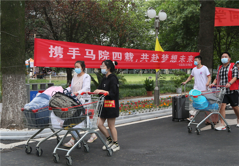 学生工作处通过网上报到系统完成新生身份数据审核录入,组织二级学院党委副书记、辅导员在学生家长咨询服务点和学生工作临时处理点为报到新生与家长答疑解惑,全天候做好新生报到入校审核。各二级学院分层分类掌控新生来校信息,安排校内接驳车和迎新志愿者帮助新生运送行李至宿舍,畅通新生报到“最后一公里”,确保新生安全顺利报到。
