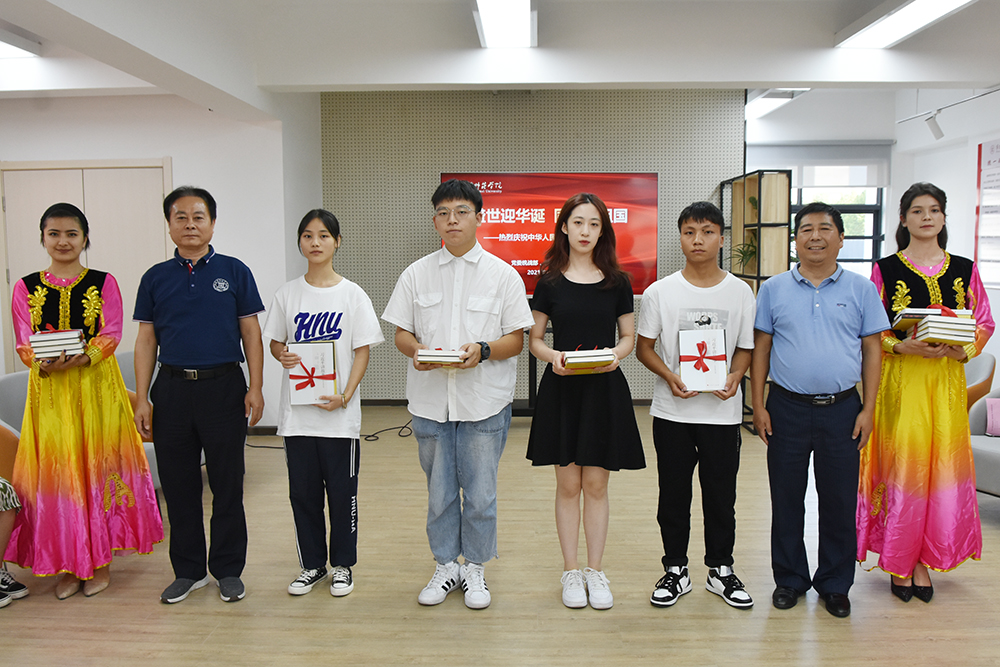 杨亚军和党委统战部副部长张同刚为少数民族学生代表赠送《周恩来—永远的榜样》《习近平讲故事》两本书籍。杨亚军代表学校向全体少数民族同学及其家人致以最诚挚的节日祝福,并寄语全校少数民族学生:一要爱党爱国,有家国情怀。要坚决捍卫祖国统一,珍惜来之不易的学习机会,在遵守法律、纪律和规章制度前提下,放飞理想梦想,听党话、感党恩、跟党走,做到请党放心、强国有我。二要相互尊重,和睦相处。希望大家在淮师这个大家庭里和睦相处,互相尊重,互帮互助,共同进步。不拉帮结派,不搞小团体,不为小事伤和气,多为民族团结和谐做实事。三要练就扎实本领,立志报效祖国。既要读有字之书,也要读无字之书。铸牢中华民族共同体意识,为报效祖国学好专业知识,掌握文化技能,增强创新本领,为建设繁荣昌盛的祖国积累势能。