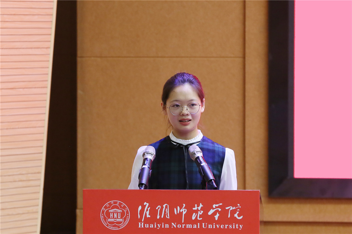 新生代表历史学院严慧同学分享了初来淮师之感,希望同学们珍惜攥在手里的机遇、珍惜光阴,保持昂扬向上的青春姿态,朝着梦想坚定前行。