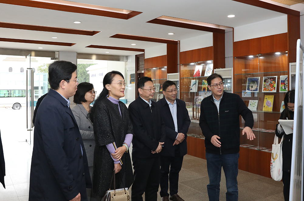 图为江苏省高校统一战线同心教育实践基地工作组来淮师考察创建工作。记者 唐瑀 摄
