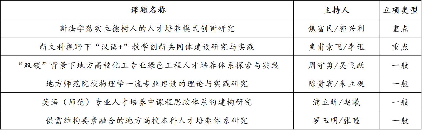 近年来,学校高度重视教育教学改革研究,坚持以课题项目促进教学改革,以教学改革培育教学成果,通过教学成果提升人才培养质量的发展思路,鼓励引导校内专任教师和教学管理人员结合我省高等教育改革发展实际,积极探索高校教育教学改革面临的新问题、新情况、新要求,着力研究和解决当前及今后一个时期高等教育教学改革与创新型人才培养中的重点和难点问题。