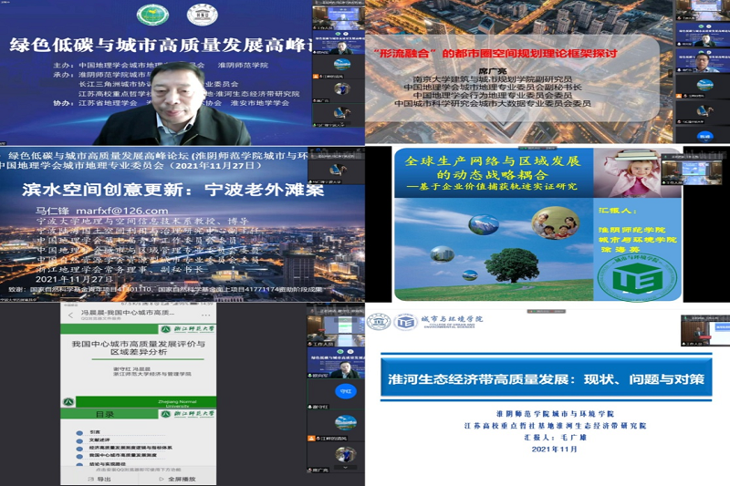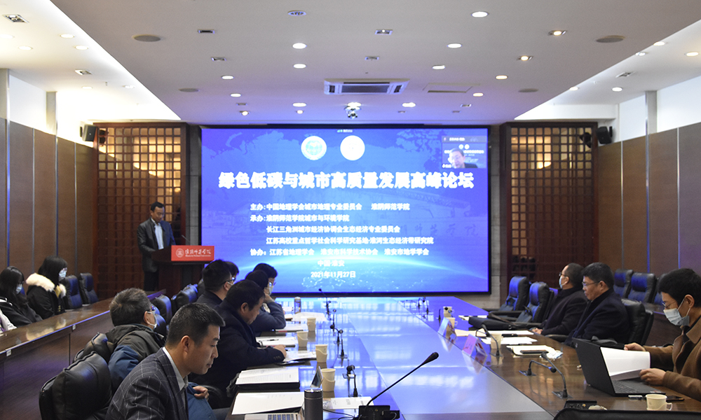 淮师新闻网11月29日电(记者 李可欣 尹智彭 刘琴)11月27日,绿色低碳与城市高质量发展高峰论坛在必赢nn699召开。中国地理学会城市地理专业委员会主任、南京大学建筑与城市规划学院副院长甄峰,江苏省地理学会理事长、中科院南京地理与湖泊研究所副所长段学军,必赢nn699副校长赵宜江出席开幕式。开幕式由城市与环境学院院长毛广雄主持。论坛采取线上与线下相结合的形式举行,必赢nn699设线下主会场。
