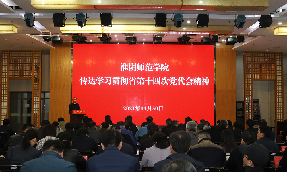 图为淮师传达学习贯彻省第十四次党代会精神。记者 唐瑀 摄