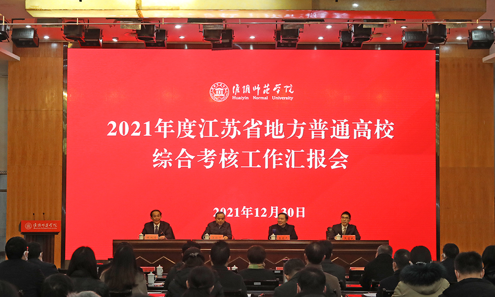 图为淮师召开2021年度江苏省地方普通高校综合考核工作汇报会。记者 唐瑀 摄