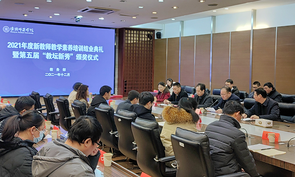 淮师新闻网12月31日电(记者 陈旭东)12月29日下午,2021年度教师教学素养培训结业典礼暨“第五届”教坛新秀颁奖仪式在长江路校区图书馆第一会议室举行,副校长施军,教务部部长周平,党委教师工作部部长、人事处处长徐继明,教务部副部长、教学质量监控与评估中心主任葛军出席活动。教务部副部长皇甫素飞主持会议。