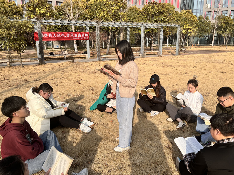 共赏盛世繁华,忽闻大江歌罢。“北京冬奥会惊艳了世界,全国‘两会’、北京冬残奥会相继开幕,一幅幅绘就大国气象的壮丽蓝图正徐徐展开。此刻,我最想对周恩来总理说的话是,这盛世如您所愿!”淮师学子们在《周恩来精神概论》在线课程专题讨论区纷纷留言互动,道出了对周总理的无尽思念。美术学院学子前往周恩来总理故居开展“海棠花开深情驻,砥砺奋进与党行”主题活动,在沉浸式的氛围中追寻周恩来总理的足迹,缅怀他的光辉业绩。城环学院学子赴周恩来童年读书旧址开展 “传承恩来精神 书写无悔青春”主题活动,同学们现场朗读了写给周总理的信件,发出对周恩来总理的深情呼唤。教科院学子在午后盛开的梅林,吟诵周恩来总理的经典诗歌,开启了一场和周恩来总理跨越时空的相遇。