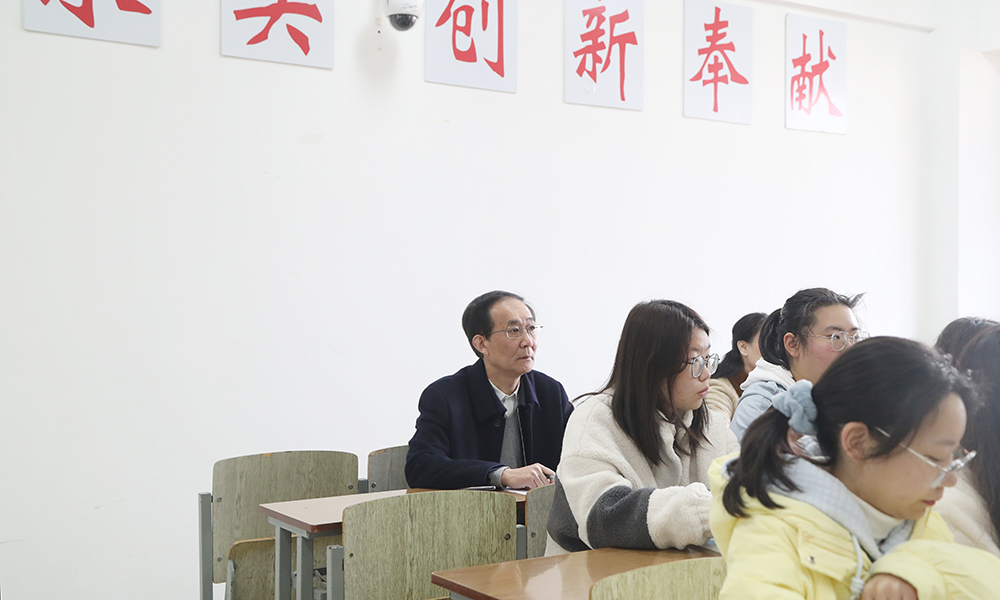图为校党委书记朱汉清在听课。记者 唐瑀 摄