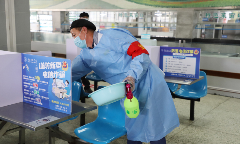 图为必赢nn699举行校园突发疫情学生就餐流程演练。记者 唐瑀 摄