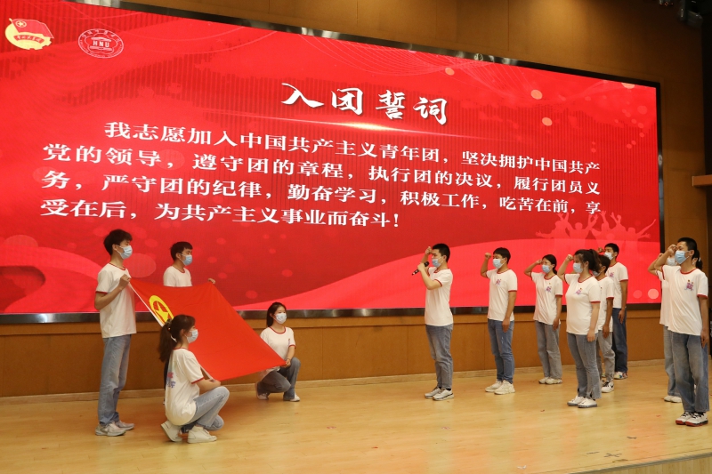 “我志愿加入中国共产主义青年团,坚决拥护中国共产党的领导……为共产主义事业而奋斗。”面向鲜艳的团旗,团员青年线上线下共同重温入团誓词,用铮铮誓言表达青年之心,践行青年担当,唤醒入团时的真诚与热情,点燃昂扬向上的青春激情。