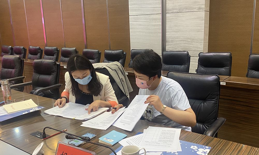 图为检查组查阅台账资料。记者 张菁菁 摄