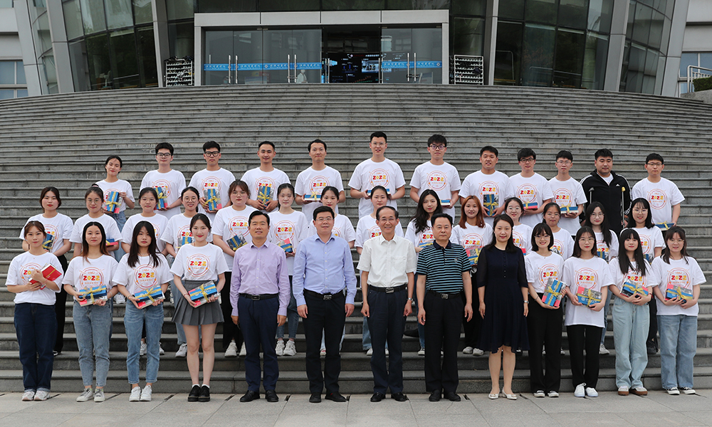 座谈会结束后,朱汉清、杨亚军代表学校为毕业生代表赠送毕业纪念品,并与他们合影留念。