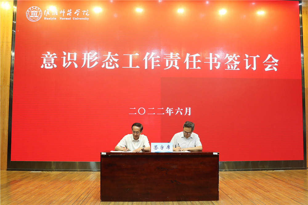 会议举行了意识形态工作责任书签字仪式。校党委书记朱汉清与二级党组织负责人签订了意识形态工作责任书。