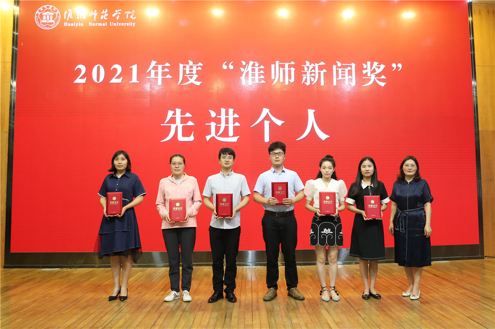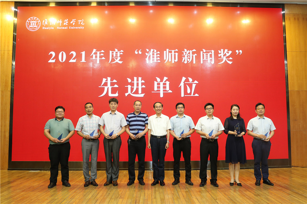 与会领导为2021年度“淮师新闻奖”获奖先进单位、优秀新媒体、优秀作品及先进个人颁奖。