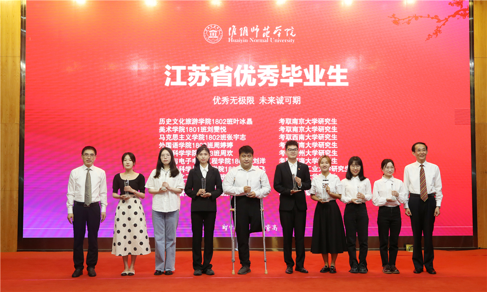 毕业典礼分为“逐梦”“圆梦”“筑梦”三个篇章。典礼在毕业MV《明天,你好》中拉开序幕,一幅幅生动的画面展示了淮师伴随着同学们,经历了一个又一个春夏秋冬的温暖画面,表达了2022届毕业生和淮师共同全力以赴、风雨兼程、追逐明天的美好梦想。随后,校领导为2022届毕业生“荣誉之星”颁奖。