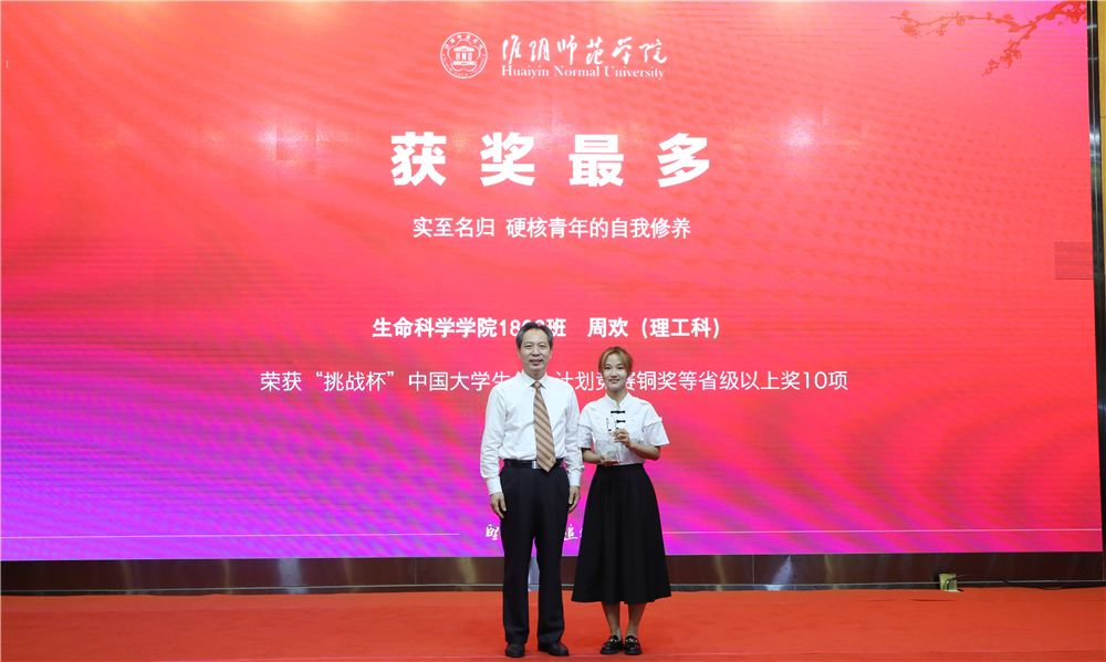 图为韩同友为获奖最多毕业生颁奖。记者 唐瑀 摄