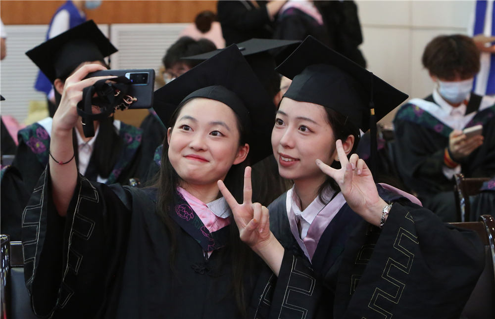 毕业典礼暨学位授予仪式在校歌《报国壮志酬》中圆满落下帷幕,与会领导、老师挥手与毕业生告别。
