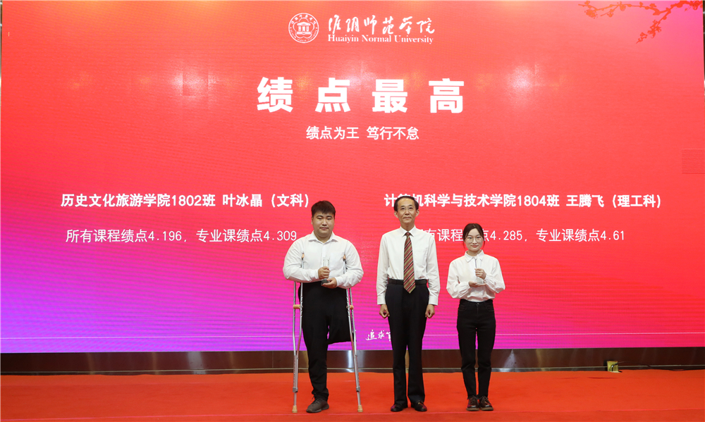 图为朱汉清为学分绩点最高毕业生颁奖。记者 唐瑀 摄