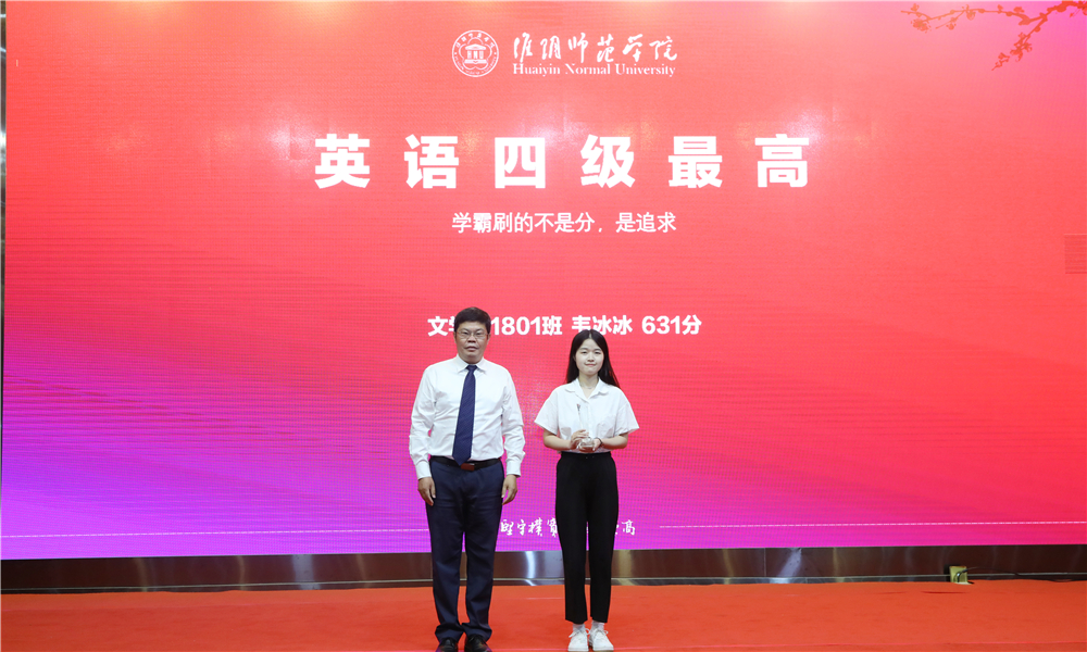 图为赵宜江为英语四级最高分毕业生颁奖。记者 唐瑀 摄