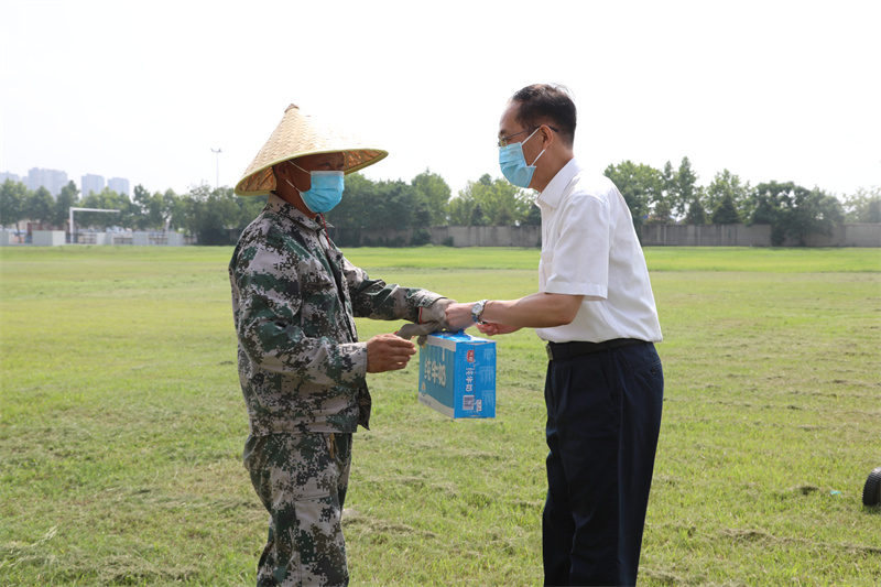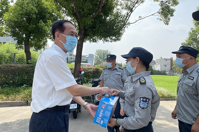 校领导先后来到杏园餐厅、音乐楼东侧草坪、长江路校区南大门、医务室、招生与就业处,与在岗教职员工亲切交谈,对大家的辛勤付出表示衷心感谢,并送上慰问品,叮嘱大家在开展工作的同时要做好防暑降温,坚持劳逸结合。