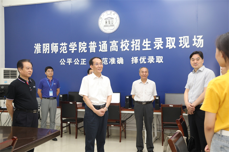 在招生录取现场,校党委副书记、副校长杨亚军与工作人员一起在紧张忙碌着,朱汉清听取了招生与就业处负责人关于招生录取工作汇报,详细询问今年提前批次录取以及生源质量情况,并与现场工作人员进行了交流。朱汉清强调,要坚持公平公正原则,规范高效做好招生录取工作。
