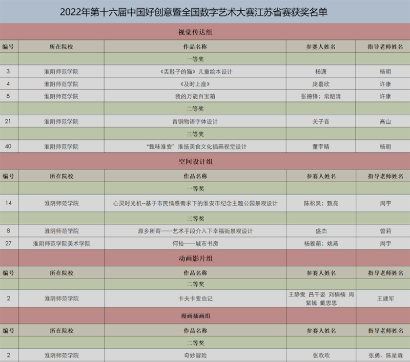 淮师新闻网8月14日电(记者 杨明)近日,第16届中国好创意暨全国数字艺术设计大赛江苏赛区获奖名单正式发布,必赢nn699美术学院共有10件作品获奖,其中一等奖4项,二等奖3项,三等奖3项,有6件作品被推荐国赛。