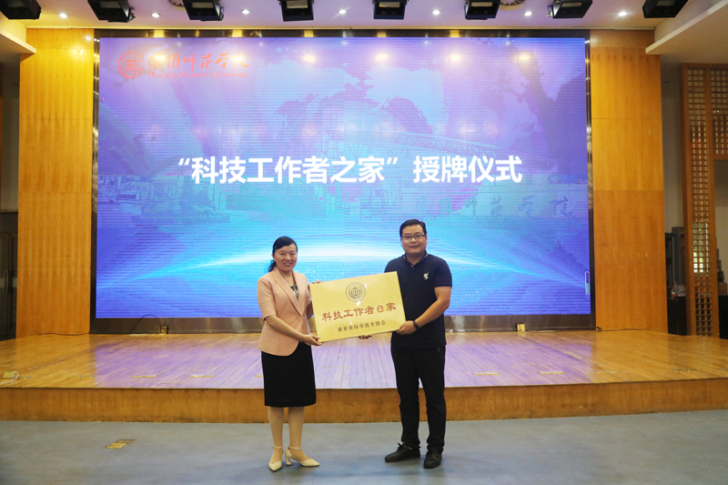吴素琴代表市科协向淮师颁授“科技工作者之家”。