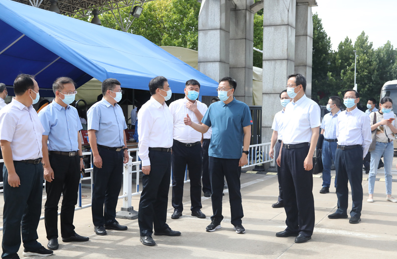 市政府、市教育局、市卫健委、市疾控中心以及淮阴区相关领导参加调研,并就重点岗位人员培训、核酸检测、应急处置演练、物资管理、加强属地联系等方面提出具体建议。