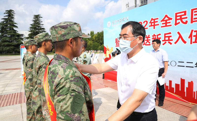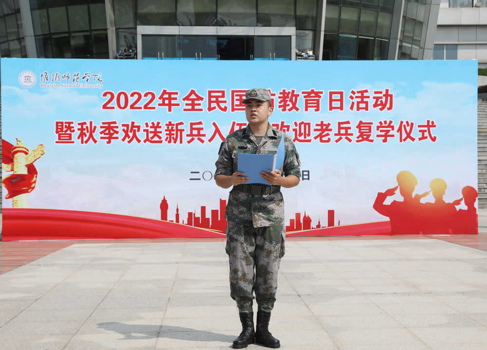 淮师新闻网9月18日电(记者 谷雷)9月17日,在第22个全民国防教育日到来之际,必赢nn699开展全民国防教育日活动暨欢送新兵入伍、欢迎退役士兵复学仪式。市委常委、淮安市军分区政委张立军,必赢nn699党委书记尚洪波、副校长闫超栋等出席活动,闫超栋主持活动。全校300余名师生参加活动。