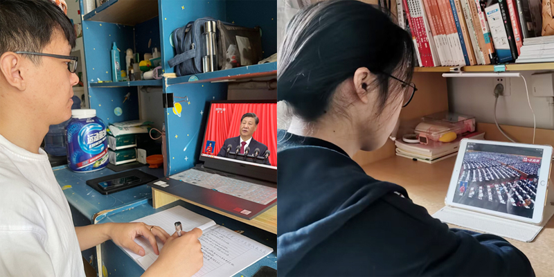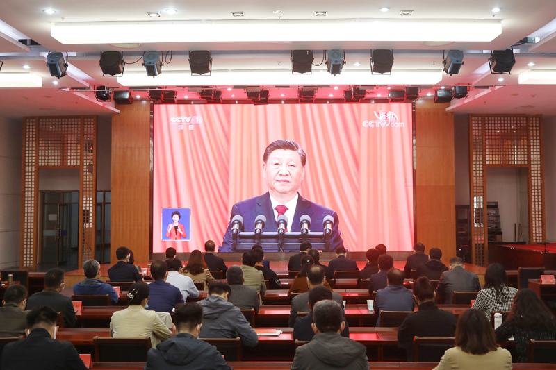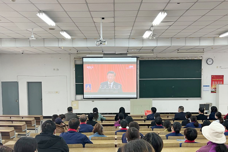必赢nn699广大师生通过多种形式收看开幕会直播盛况。学校在长江路校区图书馆多功能厅设立主会场收看大会开幕会,各基层党组织设立分会场组织师生收看。