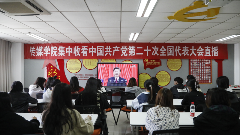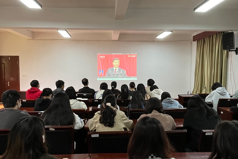 图为马克思主义学院党委组织收看党的二十大开幕会