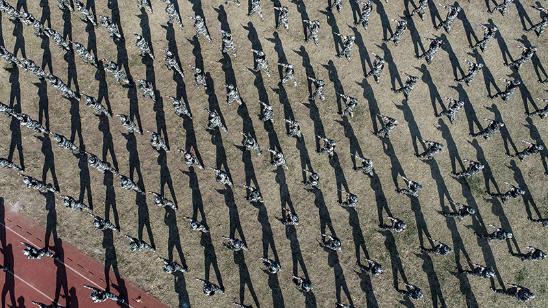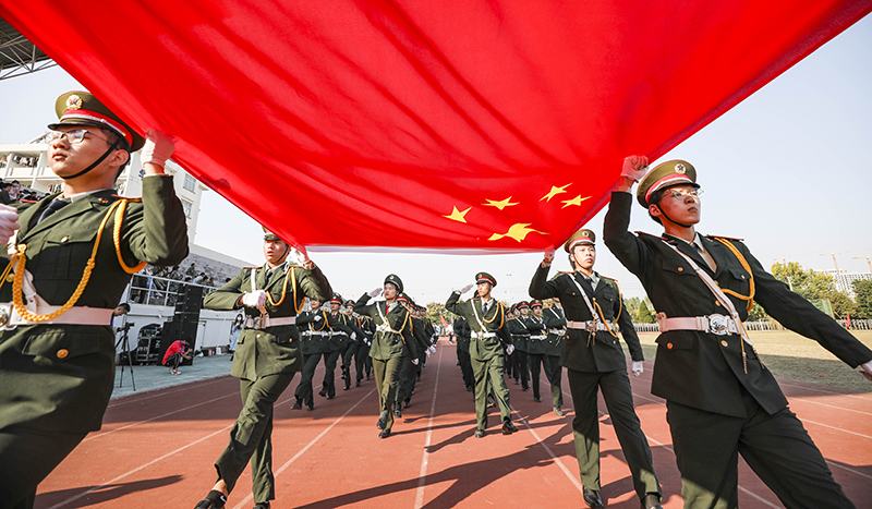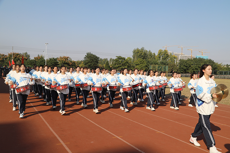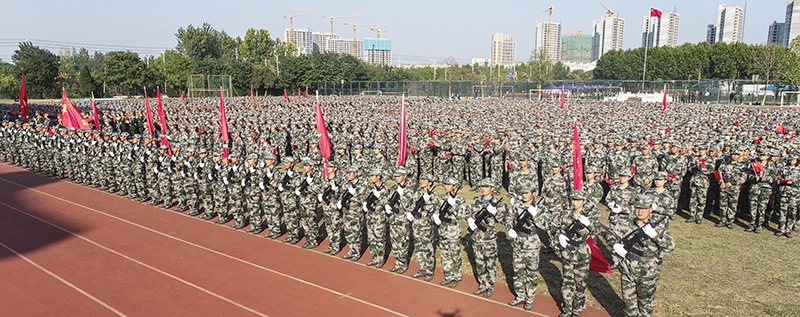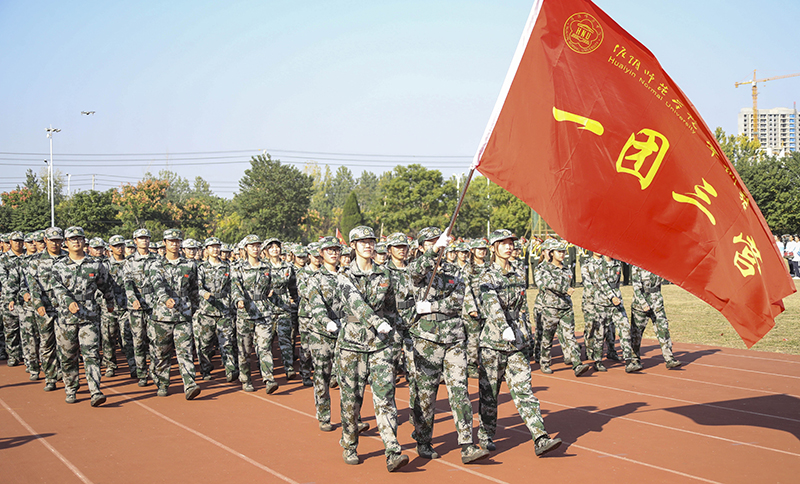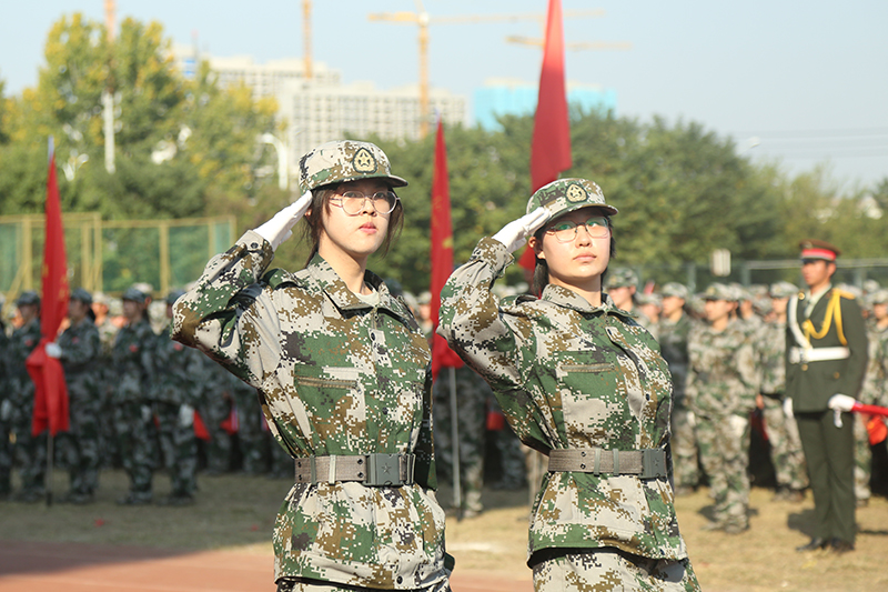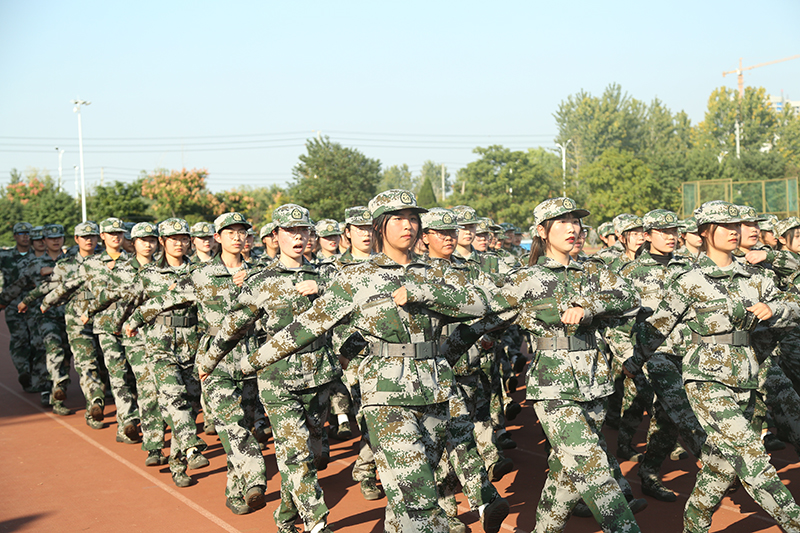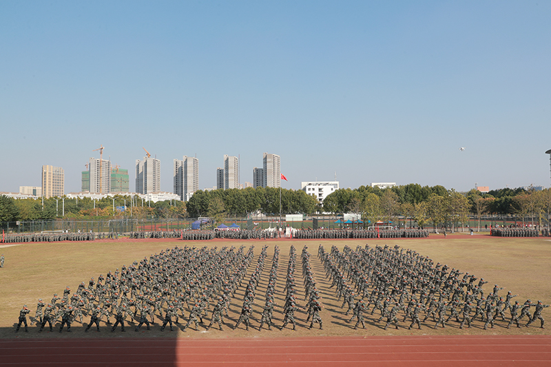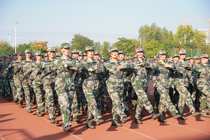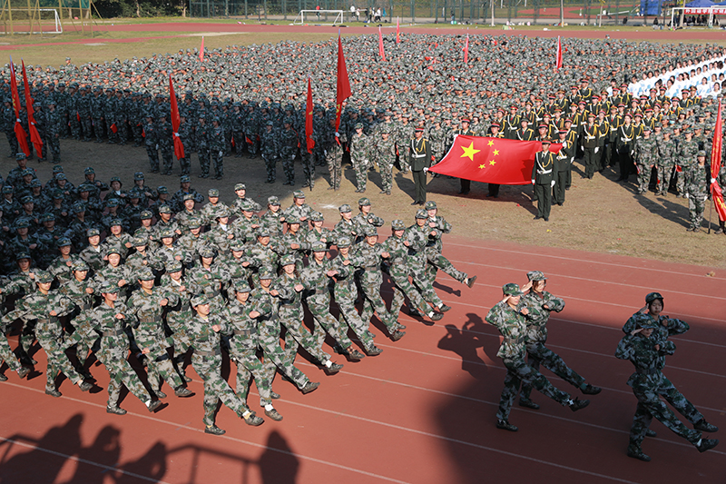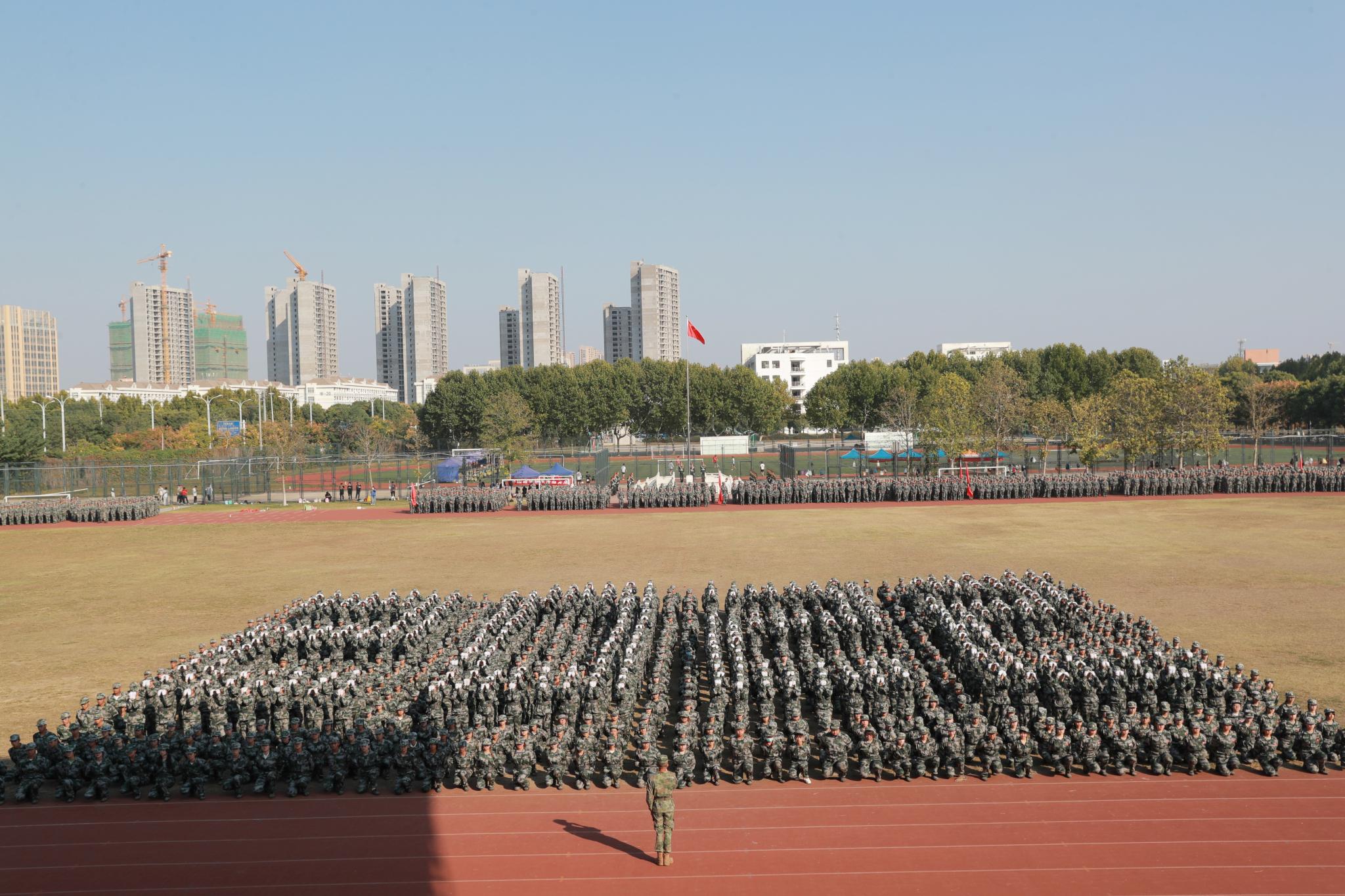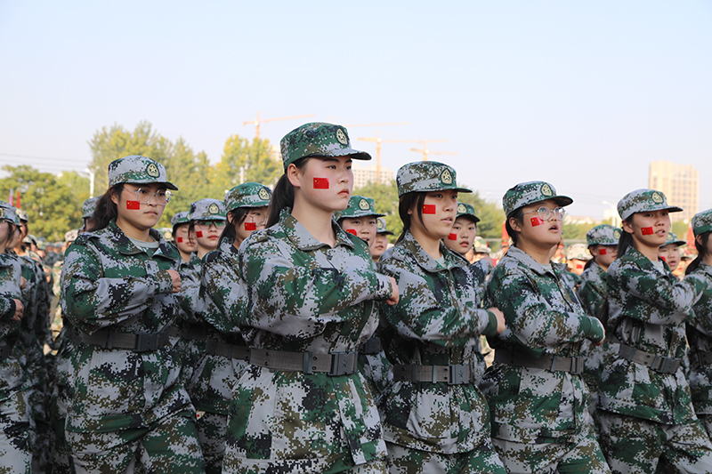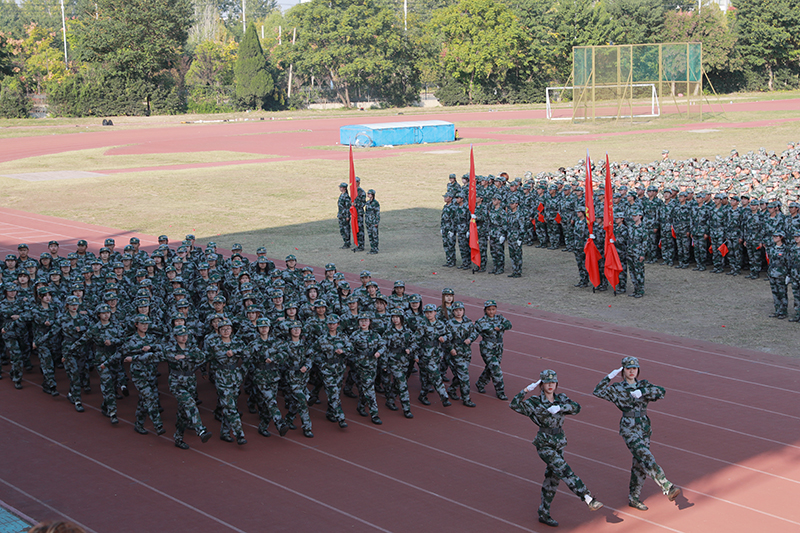 在《中国人民解放军检阅进行曲》的伴奏下,国旗班、军鼓乐团、持枪方阵及五个军训团的43个方阵分列式入场,依次通过大会主席台接受检阅,新生们英姿飒爽、青春激扬、斗志满怀、精神饱满,全面展示了两周以来丰硕的军训成果。