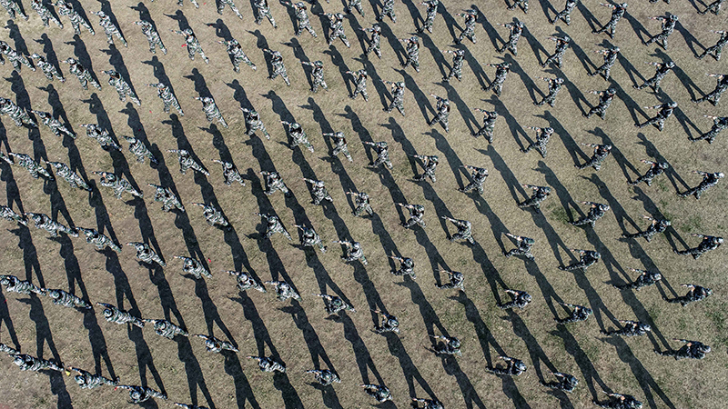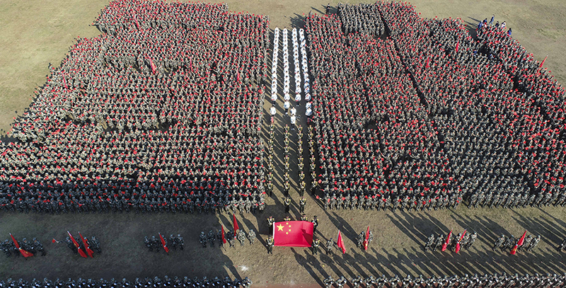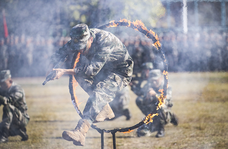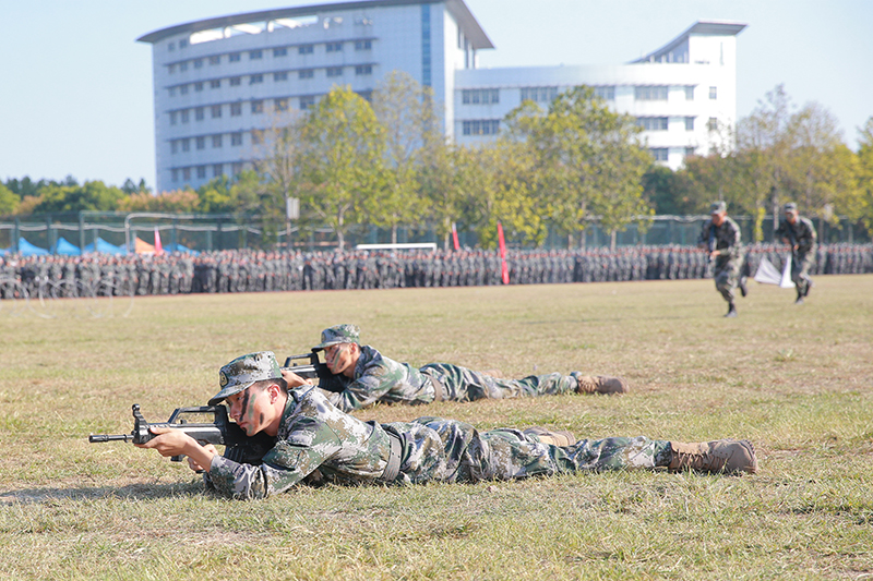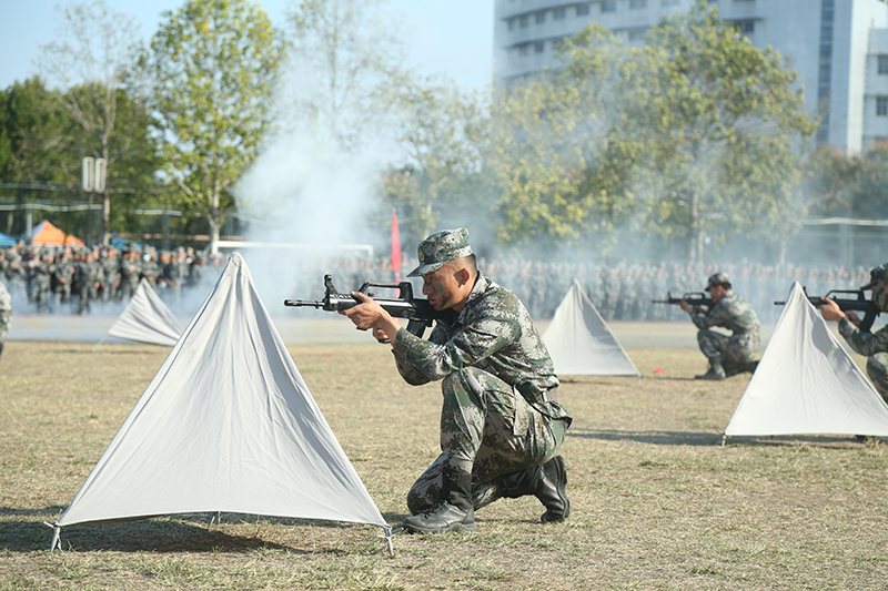 大会在庄严的国歌声中拉开序幕。400名女生表演的匕首操、500名男生表演的格斗术、部队军训教官队列表演以及学校退役士兵教官战术表演,充分展示了淮师新生和当代中国军人的英姿和风采,赢得了现场师生的阵阵掌声。