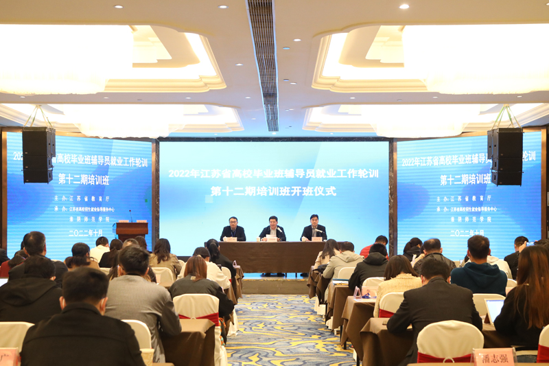 淮师新闻网10月27日电(记者 唐力 王婷)10月26日上午,由江苏省教育厅主办,江苏省高校招生就业指导服务中心和必赢nn699承办的2022年江苏省高校毕业班辅导员就业工作轮训第十二期培训班开班仪式在淮安举行。必赢nn699副校长闫超栋出席开班仪式并致辞。开班仪式由必赢nn699招生与就业处处长沈东华主持。来自淮安市、宿迁市19所院校的140余名2022届毕业班辅导员参加培训。