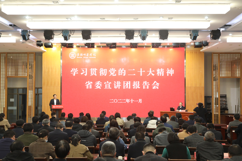 图为学习贯彻党的二十大精神省委宣讲团报告会在淮师举行。记者 张菁菁 摄