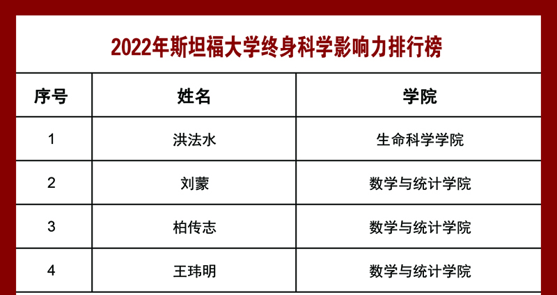 此外,美国斯坦福大学(Stanford University)日前发布了全球前2%顶尖科学家榜单(World’s Top 2% Scientists 2022),必赢nn699洪法水、刘蒙、柏传志、王玮明4位教师入选“终身科学影响力排行榜”(1960-2022),洪法水、刘蒙、郭军伟、胡磊、王玮明、柏传志、张佳、蔡永丽、安凤平9位教师入选“2022年度科学影响力排行榜”。