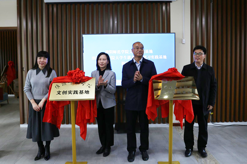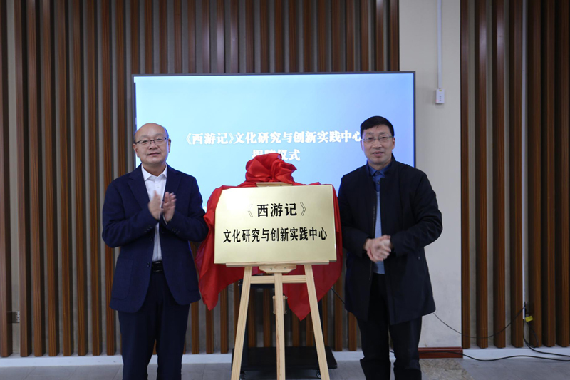 韩同友、韩高峰为《西游记》文化研究与创新实践中心揭牌,王丽、王维明、许芳红、孙辉为实践基地揭牌。