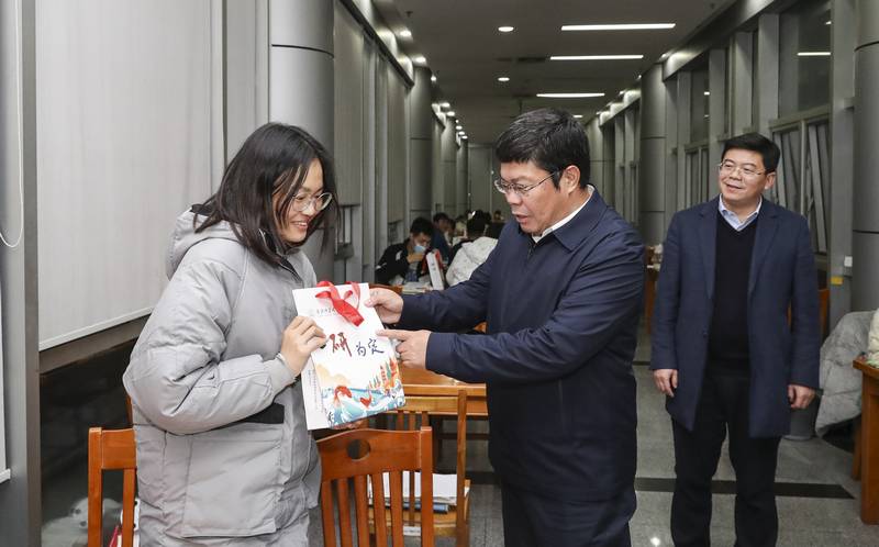 赵宜江实地走访了图书馆,慰问考研学生,为考研学生送去温暖与祝福。