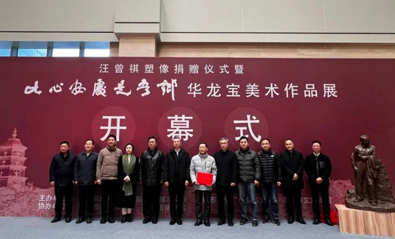 开幕式上,华龙宝教授把精心创作的雕塑《作家汪曾祺》、中国画《沈从文与汪曾祺》两件作品捐赠给家乡。本次展览共展出了华龙宝教授近年来精心创作的15件雕塑作品,83幅中国画作品以及25幅雕塑图片。