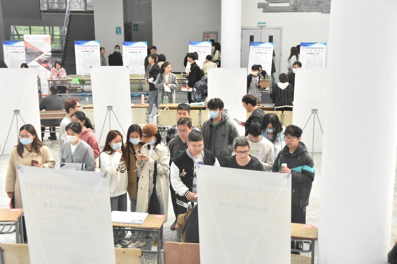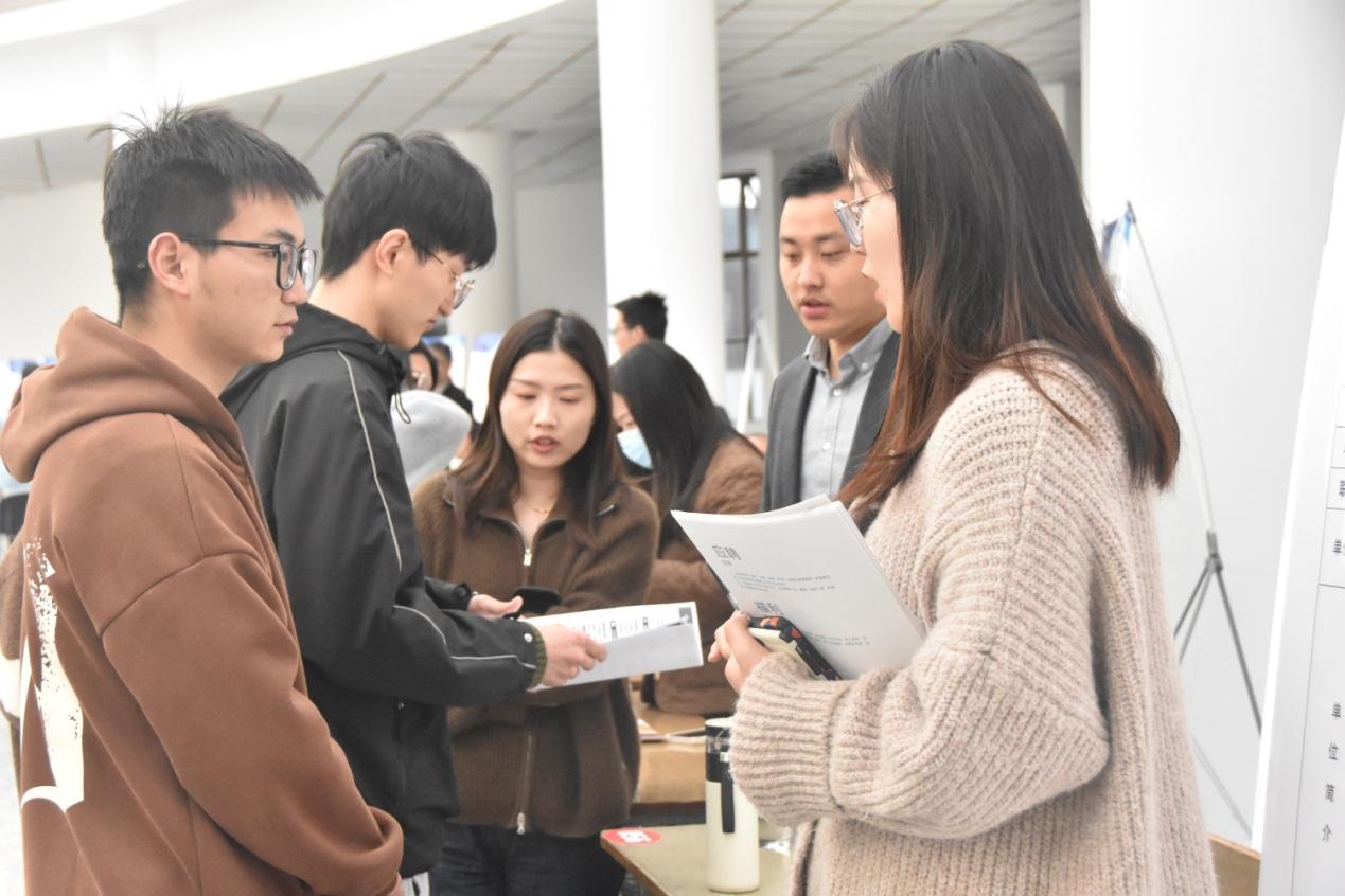 招聘会现场秩序井然、气氛热烈。同学们带着自己精心准备的简历主动与用人单位交流,各招聘单位通过海报展示、面对面交流等方式向同学们介绍单位概况、岗位需求以及员工福利。