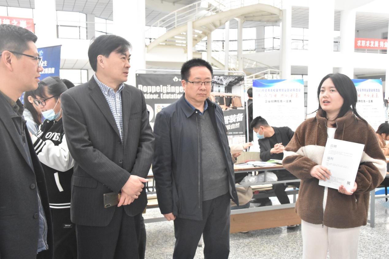 图为王乃岩等与用人单位交流。记者 杜畅航 摄