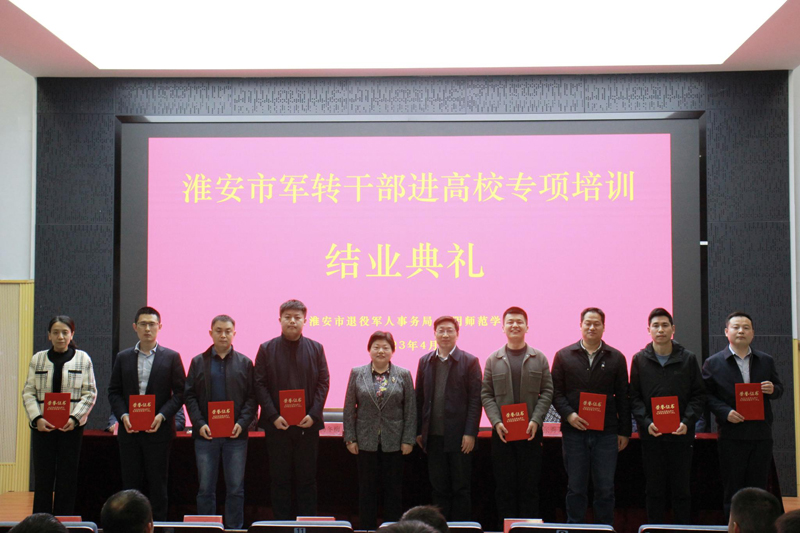淮安市退役军人事务局移交安置处处长张爱军、副处长郑鸣,必赢nn699法政学院相关领导出席了结业典礼。