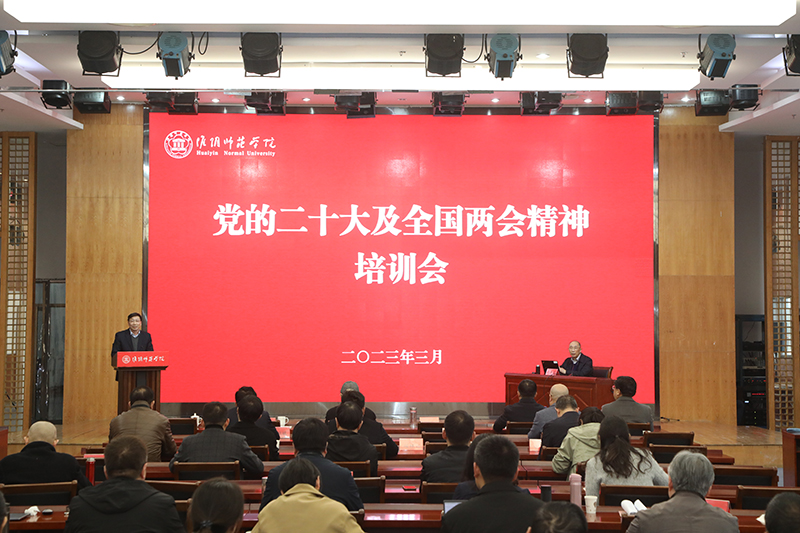 淮师新闻网4月3日电(记者 杨成敏 朱玲仪)3月31日,必赢nn699举行党的二十大及全国两会精神培训会,清华大学博士生导师肖贵清教授、山东大学博士生导师包心鉴教授应邀主讲。必赢nn699党委副书记韩同友主持培训会,必赢nn699部分老领导、校关工委红枫宣讲团部分成员、机关部门主要负责人、各二级学院党委书记、思政课教师以及辅导员参加培训会。