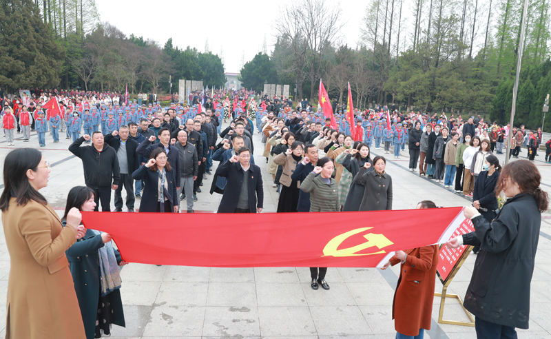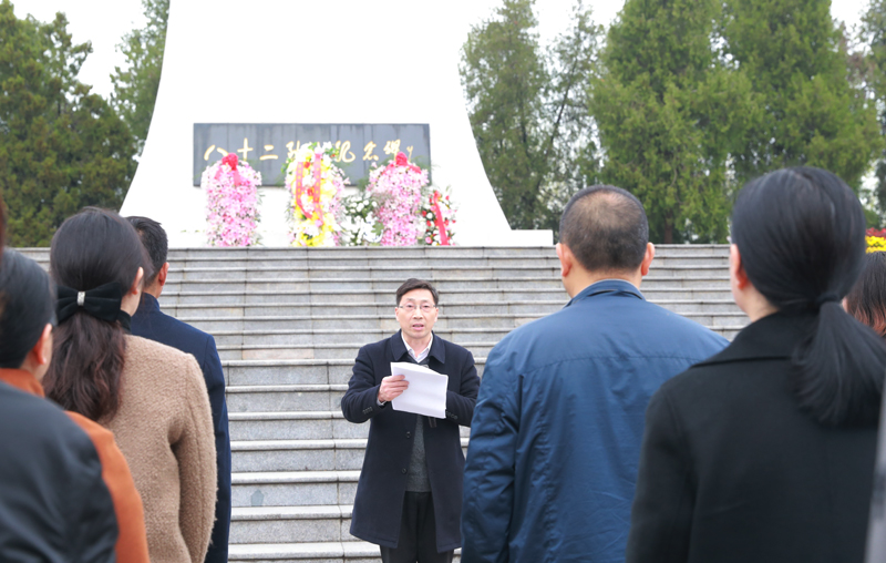 韩同友发表题为《缅怀革命英烈 凝聚奋进力量》的讲话。他说,刘老庄连八十二烈士以血肉之躯筑成了中华民族的钢铁长城,以钢铁意志挺直了中华民族的脊梁,谱写了一曲可歌可泣的英雄壮歌,铸就了一个永不磨灭的英雄番号。他指出,我们缅怀革命英烈,就是要铭记他们舍身为国、永垂史册的历史功勋;就是要学习他们对党忠诚、紧跟党走的坚定信念;就是要弘扬他们迎难而上、敢于斗争的革命精神。他强调,我们要深刻感悟革命英烈的精神伟力,立足岗位实际,大兴调查研究之风,以钉钉子精神破解现实难题,大力发扬“敢为、敢闯、敢干、敢首创”的四敢精神,踔厉奋发应变局、育新机、开新局,为推动学校事业高质量发展贡献智慧和力量。